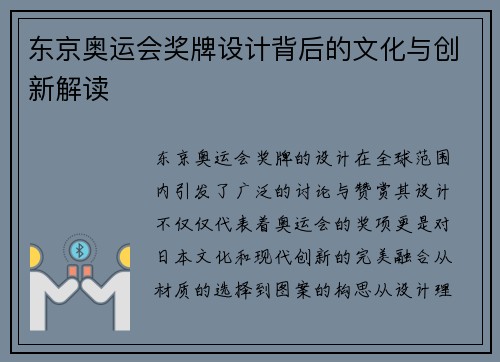 东京奥运会奖牌的设计在全球范围内引发了广泛的讨论与赞赏。其设计不仅仅代表着奥运会的奖项,更是对日本文化和现代创新的完美融合。从材质的选择到图案的构思,从设计理念到环保考虑,东京奥运会奖牌设计展现了日本...